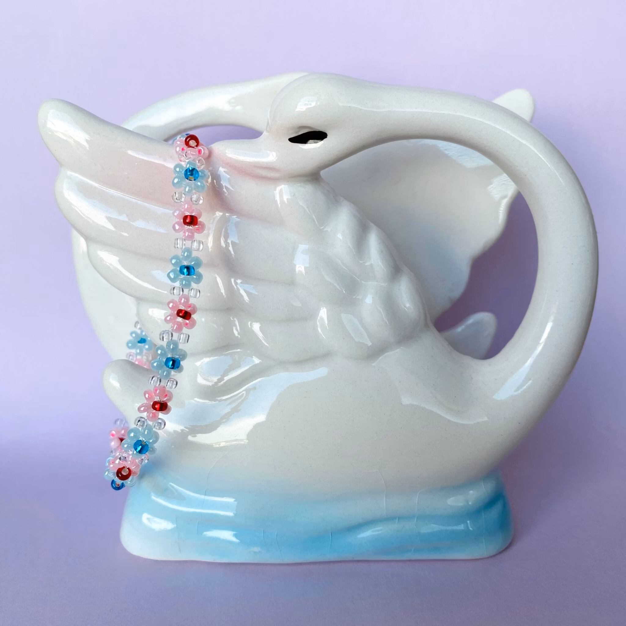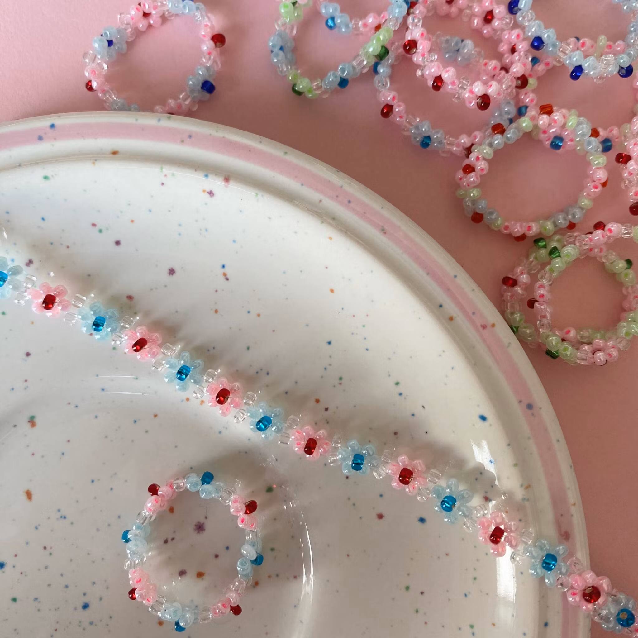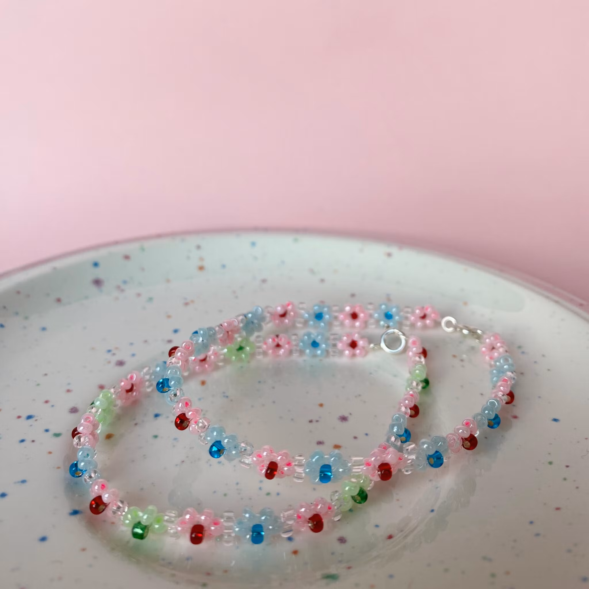 Armband med små rosa och ljusblå blommor!